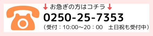 電話 :0250-25-7353 (受付:平日/10:00-15:00 土日祝/休み)