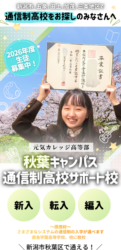 2018年4月より、新潟市秋葉区で初の広域通信制高校のサポート校としてスタートしました。